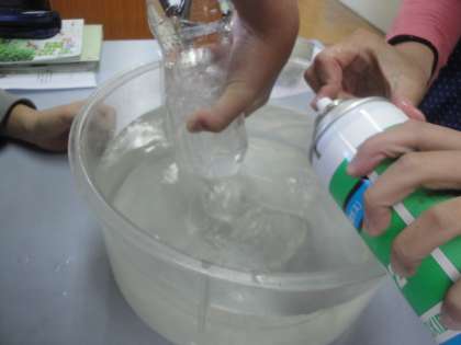 気体が水に溶けるかどうかを調べる実験を行いました。
