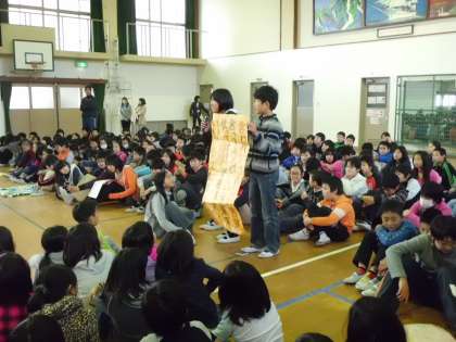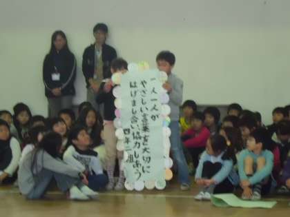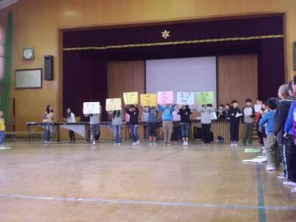 5校時になかよし集会(人権修会)を行いました。各クラスの人権目標に対する,今までの振り返りを発表・交流しました。