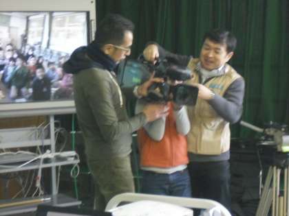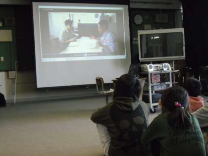 毎日放送の方にお越しいただき,どんな過程やどんな役割があって1つのニュースができるのかをお話していただきました。また,実際に放送された映像と放送原稿を使ってアナウンサー体験をしたり,とても高価なカメラを持たせてもらったりもしました。