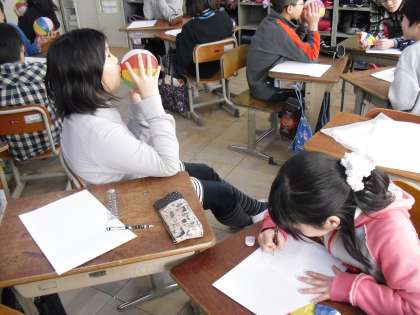図工では版画の制作に取り組み始めました。テーマは「紙風船を膨らましている友達」です。どんな作品が出来上がるのか楽しみです。