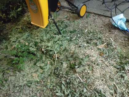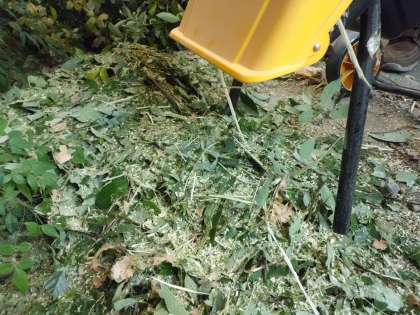 校庭の木の枝を刈り,ガーデンシュレッターで細かく刻んでいきます。信じられないぐらいの嵩になります。