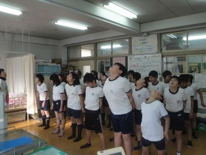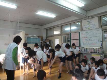 お正月明け,初めての身体計測です。姿勢やバランスについてのお話を聞きました。
