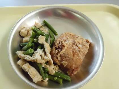 三度豆の煮つけ 鯖の竜田揚げ