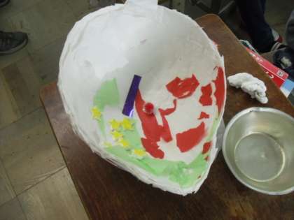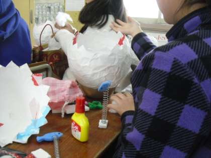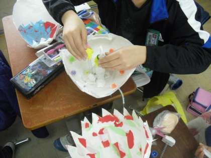 4年生の図工「ふしぎなたまご」では,たまごを割り,中の世界を作り始めました。