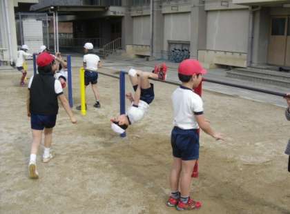 体育では、なわとびと鉄棒をしていました。自分のできそうな技に挑戦し、あきらめずに頑張りました。