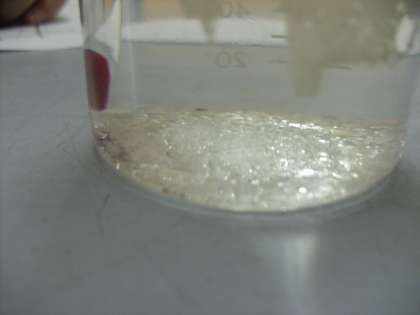 これまでの学習で学んだ,物の溶け方の規則性を適用し,水溶液の中からその中に溶けている物を結晶として取り出す実験を行いました。温めることによって溶けたミョウバンが,だんだん結晶となって現れてくる様子に子どもたちはとても驚いていました。