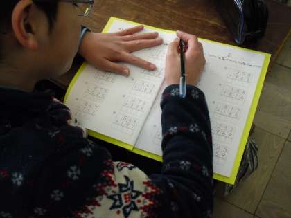 6年生になる前に少しでも計算を速く・正確にできるよう,毎日5分間計算の練習をしています。まずは3年生で学習した内容の復習からです。毎日コツコツと続けることで力を伸ばしていってほしいと思います。