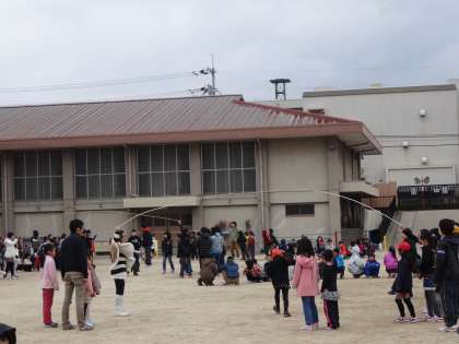 今日は,大なわ大会でした。前後半に分かれて5分間を2回跳びました。