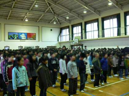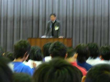 本日,朝会が行われました。校長先生から「風邪予防・体罰・緊急避難」の三つのお話がありました。
