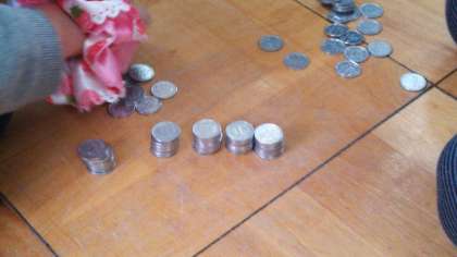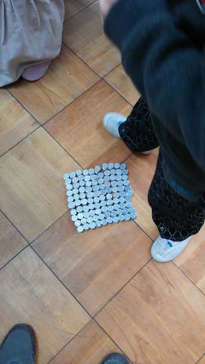 担任の先生が持ってきた大量の1円玉が何枚あるかを,数えることにしました。