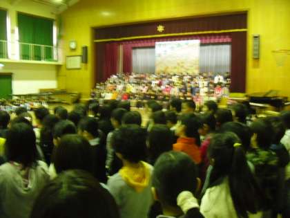 「6年生を送る会」では学年みんなで、お世話になった6年生に感謝と未来へのエール言葉とリコーダー「魔法のすず」を送りました。