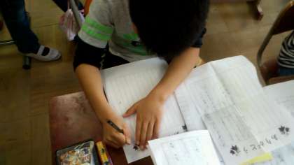 4年生では、二分の一成人式に続き、保護者の人たちにこれまでの感謝の気持ちを込めて、手紙を書きました。それぞれが想いをこめて書きました。