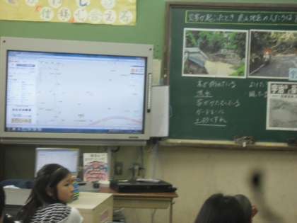 5年生の社会「自然災害を防ぐ」では宇治市の炭山の豪雨災害に焦点を当て、