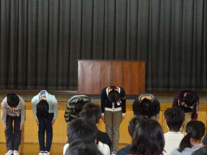 最初に,6年生の学級代表から5年生へあいさつが行われ,卒業式に向けての熱いメッセージがおくられました。