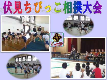3月9日(土)下鳥羽小学校体育館・常設土俵において,少年補導主催の「伏見ちびっこ相撲大会」が開催されました。伏見中学校区3小学校の1〜6年生の男女約110名が参加し,本校からは初心者の一般の部と経験者の上級の部に合計26名が参加しました。