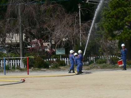 消防団による消火訓練。