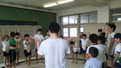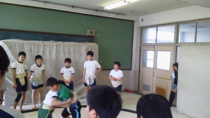 卒業生が後輩たちに胸を出し,指導をしてくれました。