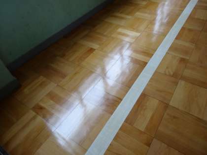 北校舎1階の廊下のワックス塗りを業者の方にしていただきました。