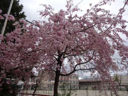 本館前の桜は満開です。新1年生も喜んでくれることでしょう。