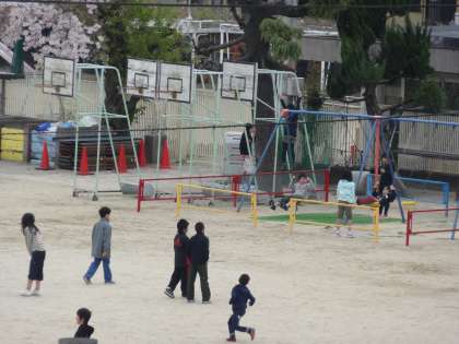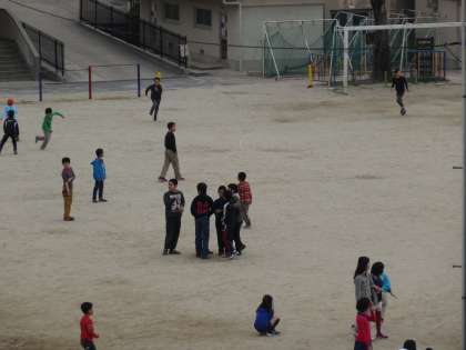 新しい教室に入って学習の用意を済ませた子どもたちが,早速運動場で元気に遊ぶ姿が見られました。