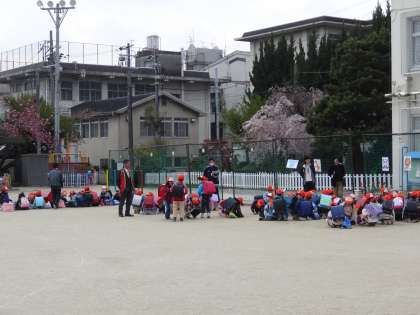 1年生の集団下校の様子です。方角ごとに集まって帰ります。集合するのも,少しずつ早くなってきました。