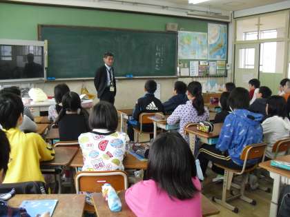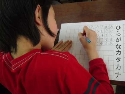 今年度,書写は教務の先生と一緒に学習しています。初めての授業では,まず最高学年としての心構えについて話していただきました。そして,書くときの姿勢と鉛筆の持ち方を確認した後,ひらがなとカタカナの50音を書く練習をしました。