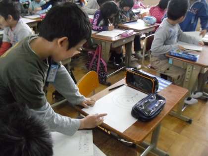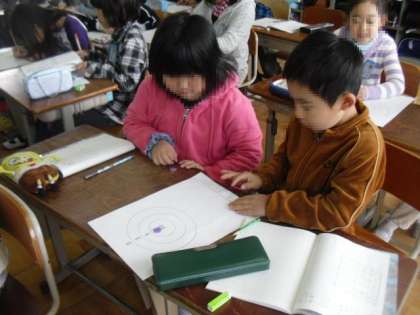九九の表とかけ算の学習で,おはじきゲームをしました。