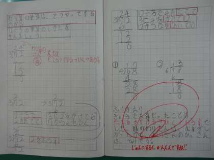 (2位数)÷(1位数)で,答えが2位数になる筆算の仕方を考えました。