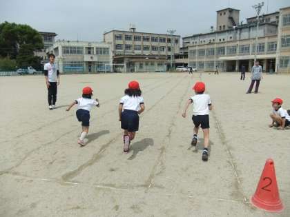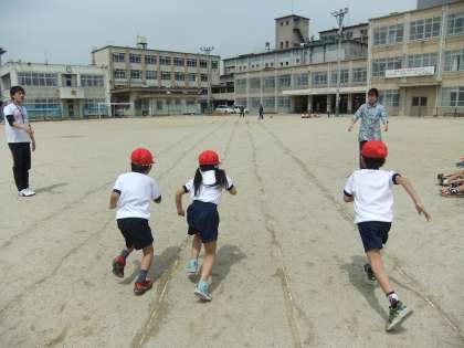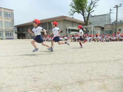 運動会に向けて,「よーい どん」に合わせて走る練習をしました。
