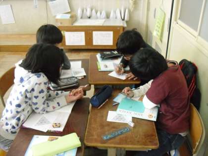 算数「みんなで話しあいましょう」の授業です。大きな正三角形の中に,いくつ正三角形があるのか考えました。その後,グループ交流をして,考えをみんなで交流しました。