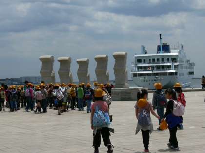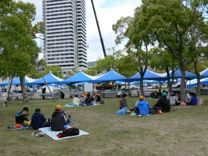 めりけんぱあくでお弁当を食べました。大きな船が出港していました。