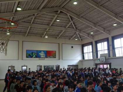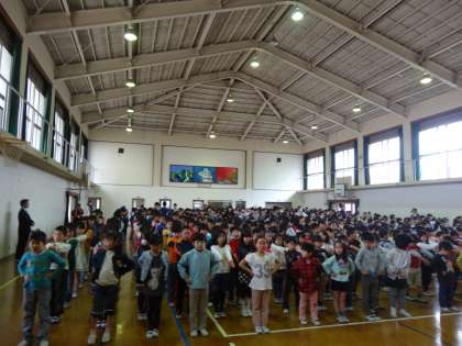 1年生から6年生まで全校児童揃っての初めての朝会です。