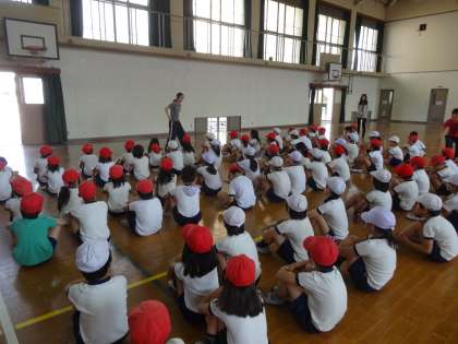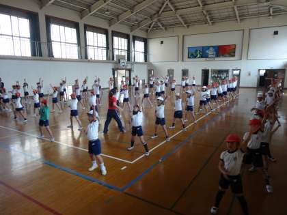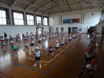 運動会に向けて,団体演技の基本動作や振り付けを学びました。