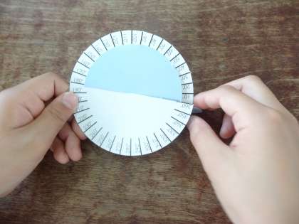 角の大きさの見当を付け,角度マシーンを使って,いろいろな大きさの角を作りました。