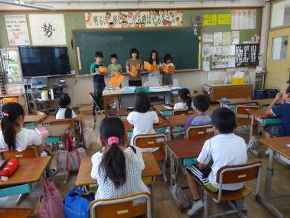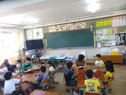 初めてのわくわく集会でした。自己紹介や他己紹介,「わたしはなんでしょう」ゲームや「じゃんけんれっしゃ」を楽しみました。