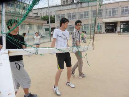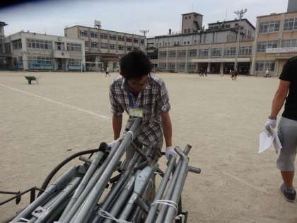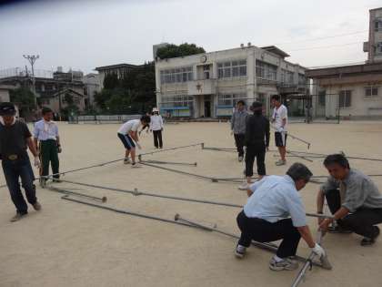 運動会の暑さ対策として,地域の皆様と協力してテントを立てました。
