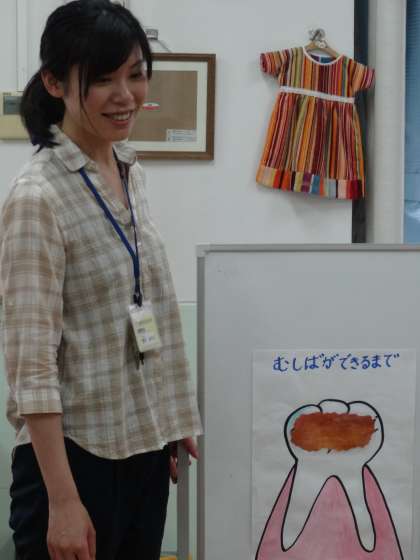 第2回目の身体計測です。保健室の先生から,歯みがきについてのお話がありました。