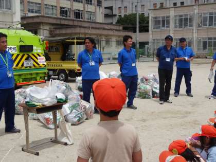 多くの質問に答えていただいたり,パッカー車の中身を見せていただいたりしました。