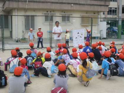多くの保護者の方々に迎えられ学校に到着しました。解散式を行い、帰路につきました。