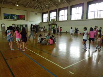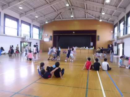 今日は9時30分から学年登校日です。体育館で楽しいゲームをしました。