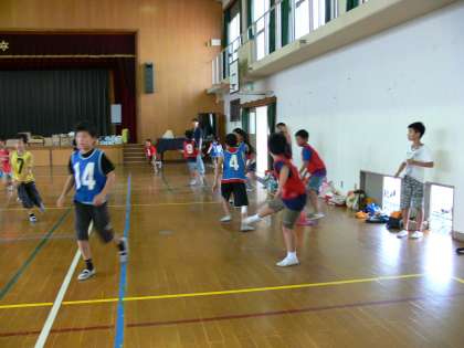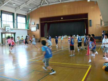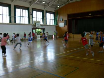 体育館で鬼ごっこ。元気な5年生は走りまくります。