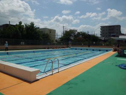 高学年の水泳指導です。4人体制で指導・監視をしています。