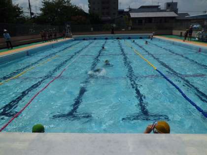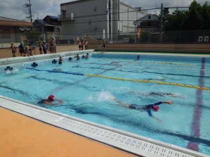 休憩の後は,新しい泳ぎ方に挑戦しています。