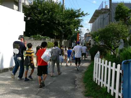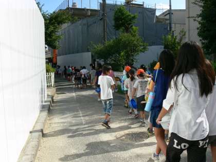 グループ毎に並んで,銭湯へ出発しました。