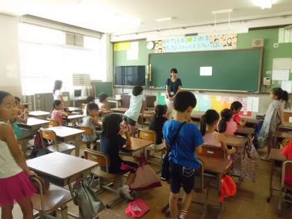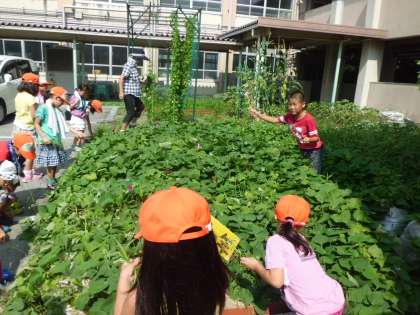 今日は2年生の登校日です。夏休みの出来事を喋ったり,サツマイモの雑草抜きをしたりしました。登校している児童は元気です。