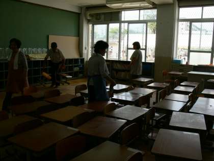 今回はひまわり・1年・2年の教室ですが,3〜6年の教室も普段手の届きにくいところの掃除をしてくださいます。