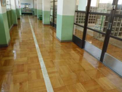 1階の昇降口の床と廊下もぴかぴかです。