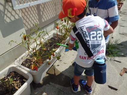 夏休み後半,きっちりと水やりに来てくれています。ごくろうさま。