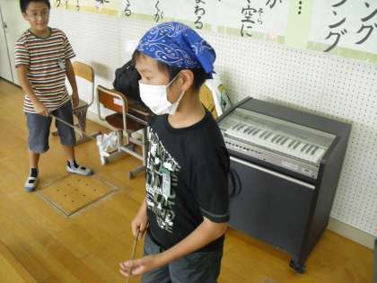 授業終了後,子どもたちははたきを嬉しそうに見ていました。