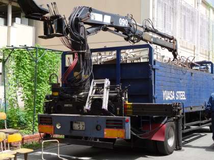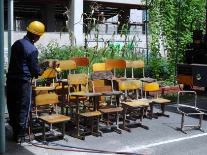 壊れた学習机を業者の方に回収してもらいました。部品ごとに分けられ,使えるものはリサイクルに回されます。
